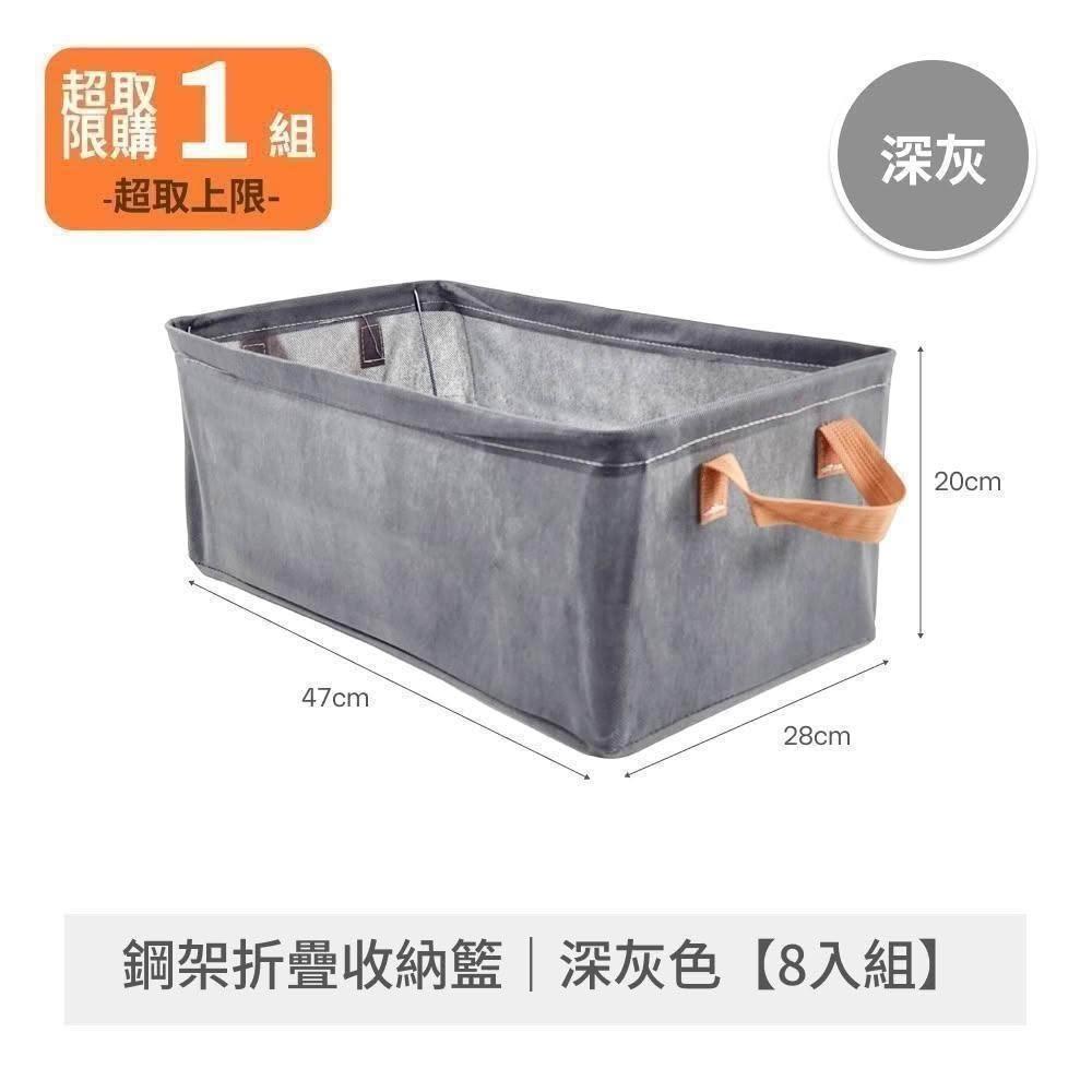 小宅收納大容量可折疊收納籃含鋼架 8入組 (內有鋼架支撐 收納箱 衣物收納籃 帶蓋收納籃 摺疊收納 衣櫃收納)