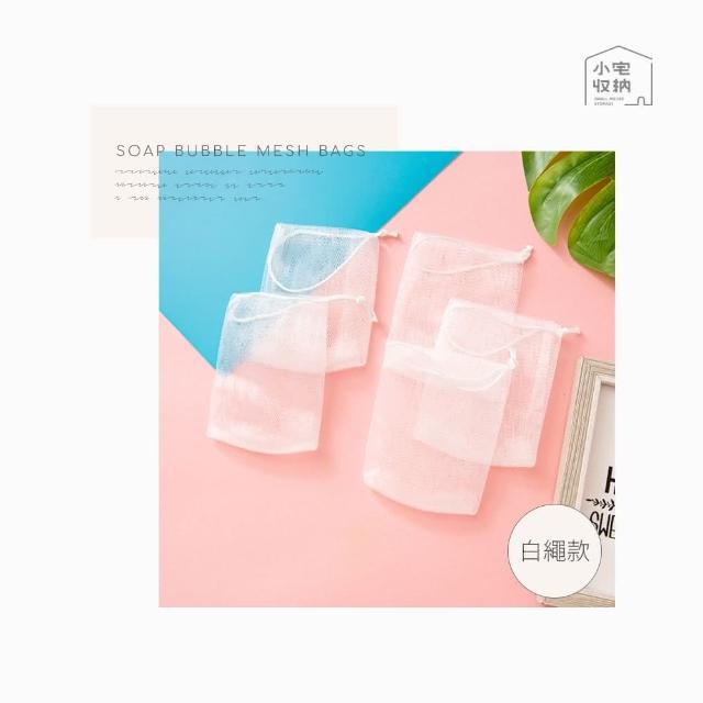 小宅收納香皂袋 肥皂起泡網 20組入白繩款 洗臉打泡網 起泡網 尼龍網袋 束口網袋