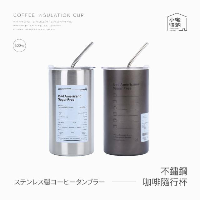 小宅收納不鏽鋼咖啡隨行杯 600ml304不鏽鋼 冰霸杯 不鏽鋼環保杯 真空雙層保溫