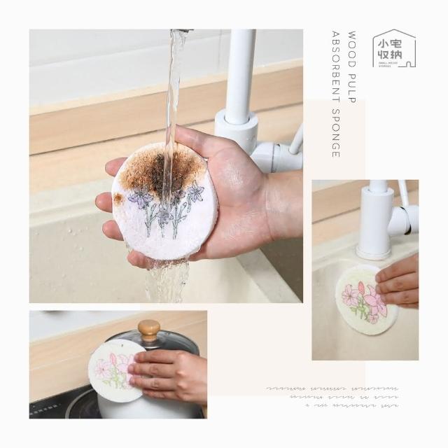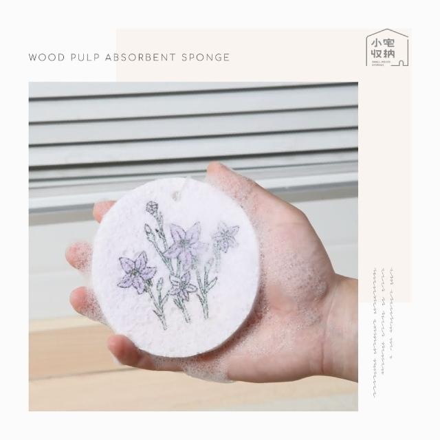 小宅收納花朵木漿吸水海綿 5入組 圖案隨機菜瓜布 洗碗刷 海綿刷 刷碗 洗鍋