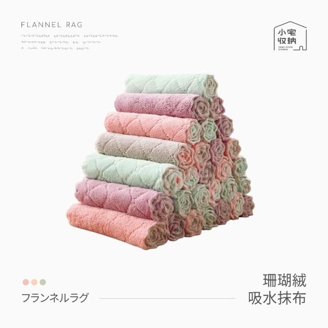 小宅收納珊瑚絨抹布25x15cm 10條組 顏色隨機洗碗布 吸水抹布 廚房抹布 抹布 擦手巾