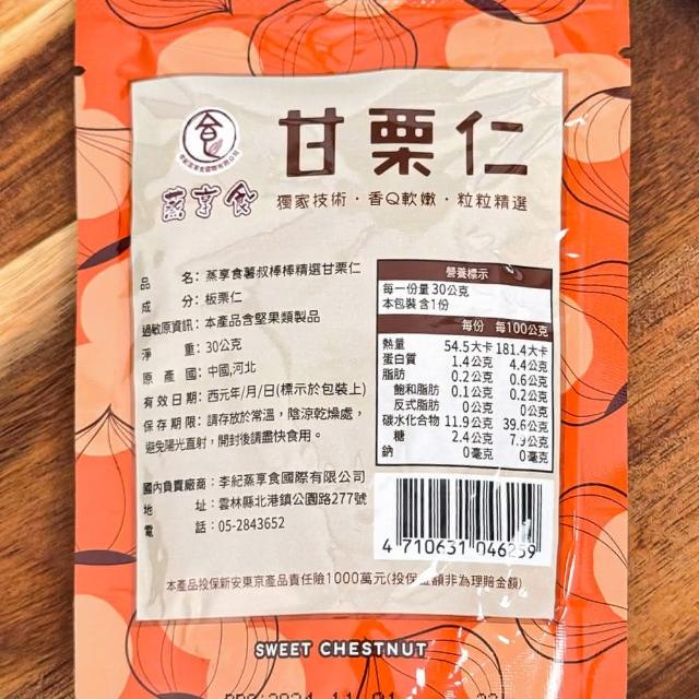 小宅收納蒸享食 甘栗仁 30g 免剝殼 即食 天津甘栗 甘栗 板栗 栗子 隨手包 零食 點心 堅果 素食