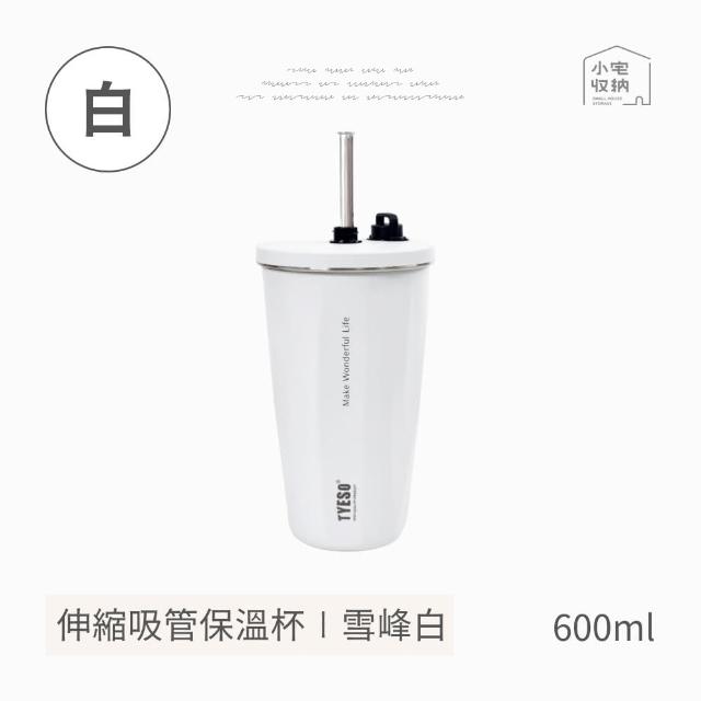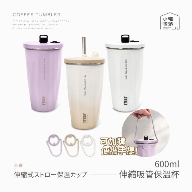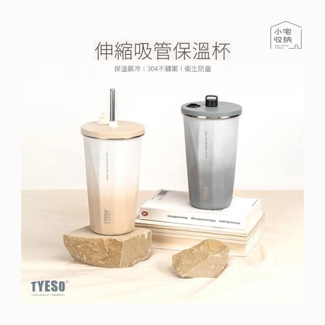 TYESO伸縮吸管保溫杯 600ml 保溫杯 彈跳吸管杯 吸管杯 304不鏽鋼 泰碩 tyeso 隨行杯 咖啡杯 環保杯 矽膠提繩