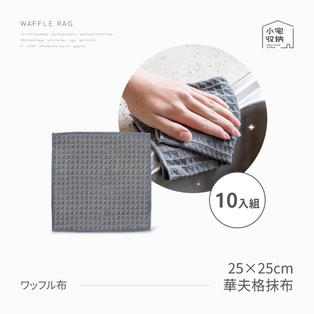 小宅收納華夫格抹布 25*25cm 10條組 抹布 吸水抹布 華夫格 廚房抹布 咖啡師專用抹布 速乾抹布 洗碗布 擦碗布 餐桌抹布