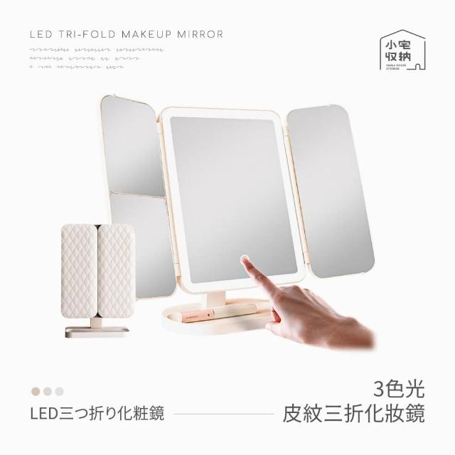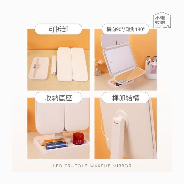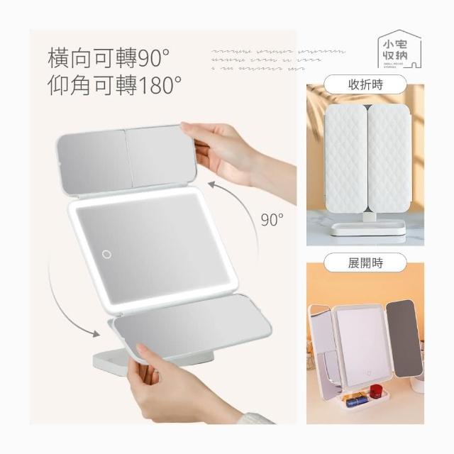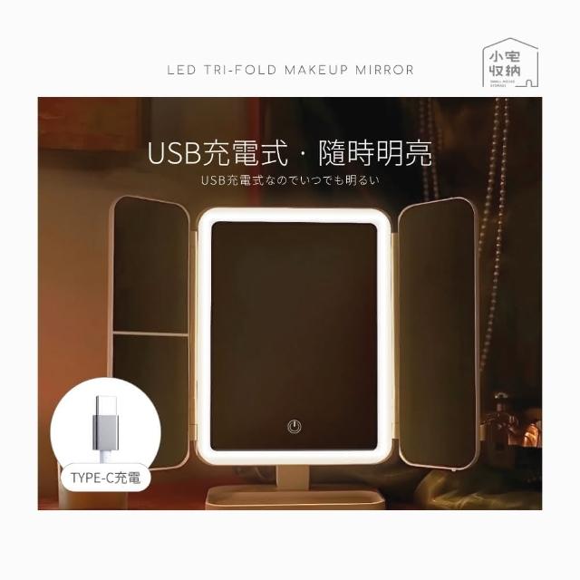 小宅收納LED化妝鏡 USB充電 觸控式 摺疊鏡 三面化妝鏡 鏡子 桌上鏡 立鏡 梳妝鏡 折疊鏡 桌鏡 摺疊化妝鏡