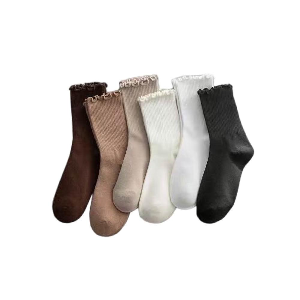 小宅收納木耳花邊中筒襪 襪子 花邊襪 堆堆襪 襪子 中筒襪 ins 日韓簡約 女襪 襪 棉襪 學生襪 復古襪 潮襪 秋冬襪