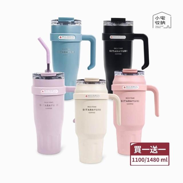 小宅收納大容量手提吸管保溫杯 x2支組 1100ml/1480ml Sitarayuri 保溫杯 吸管杯 冰霸杯