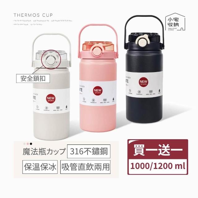 小宅收納手提316不鏽鋼吸管冰霸杯 x2支組 1000ml/1200ml_3色任選 (保溫杯 吸管杯 可直飲 有安全鎖扣)