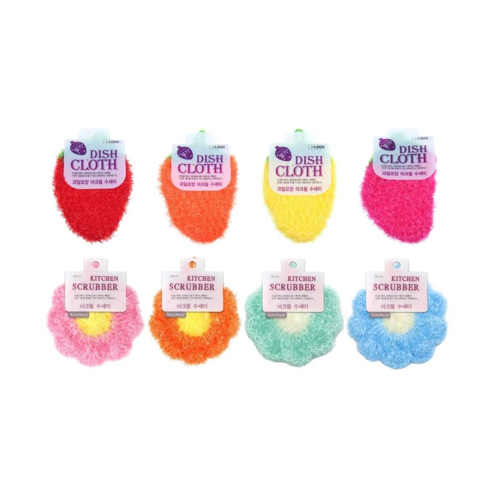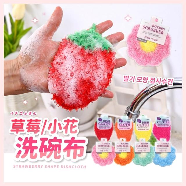 小宅收納草莓造型菜瓜布 洗碗巾 菜瓜布 韓國菜瓜布 百潔布 洗碗刷 洗碗布 不沾油 廚房海綿 廚房用品 造型菜瓜布 小花洗碗布