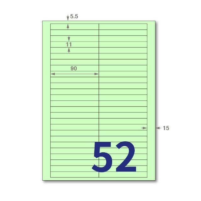 A4淺綠電腦標籤貼紙 52格 LD-8105-G-B 辦公影印紙材質 噴墨雷射三用 1000張/箱