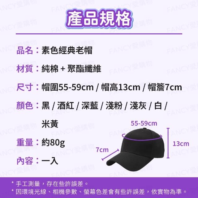 FANCY LIFE素色經典老帽(水洗棒球帽 高磅數老帽 素面老帽 純棉老帽 休閒鴨舌帽 時尚遮陽帽 棒球帽)