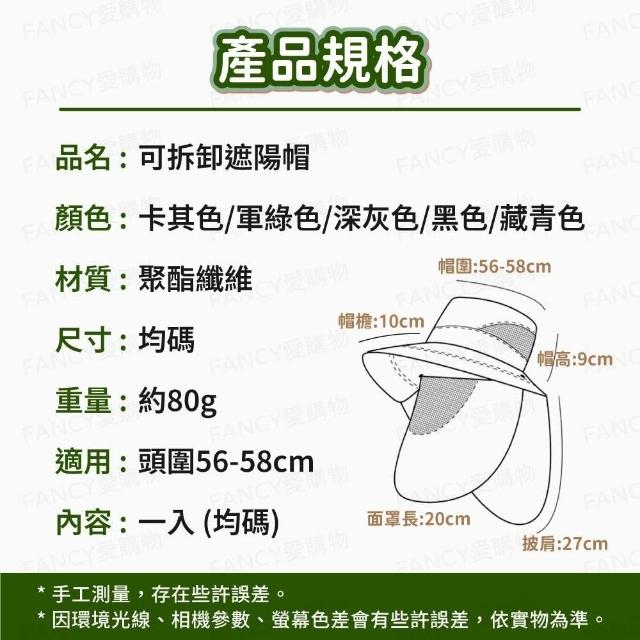 FANCY LIFE可拆卸遮陽帽(多功能防曬帽 遮陽帽 登山帽 防曬帽 釣魚帽 護頸 防曬 太陽帽 帽子 漁夫帽)