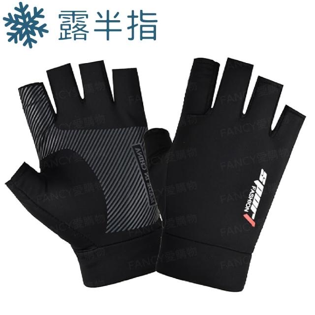 FANCY LIFE冰絲防曬手套(防曬手套 露指手套 騎士手套 開車手套 涼感手套 觸控手套 透氣手套 防滑手套)
