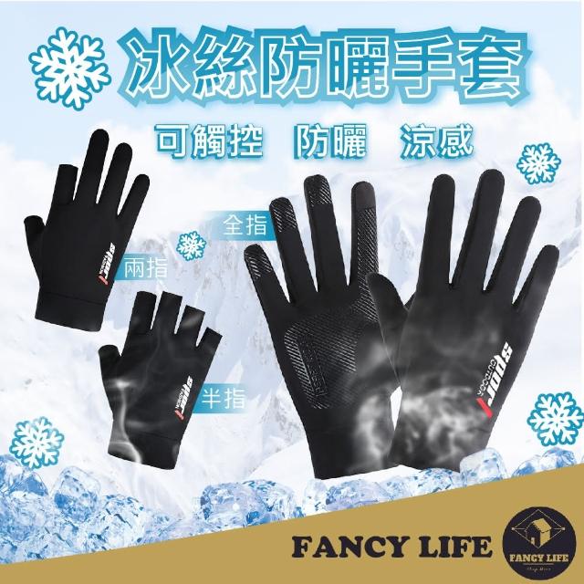 FANCY LIFE冰絲防曬手套(防曬手套 露指手套 騎士手套 開車手套 涼感手套 觸控手套 透氣手套 防滑手套)