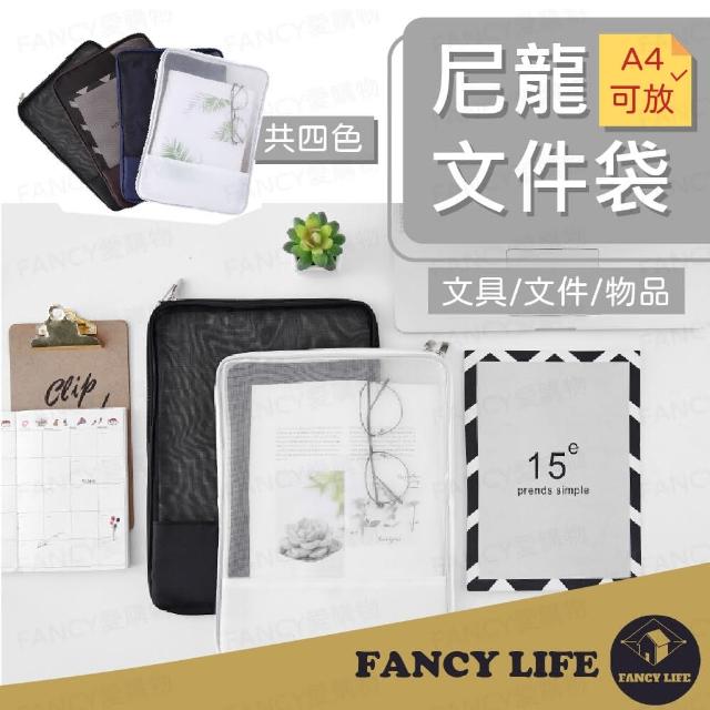 FANCY LIFE尼龍文件袋(透明網格收納袋 收納袋 文具袋 文件袋 文件夾 資料夾 資料袋 A4收納袋)