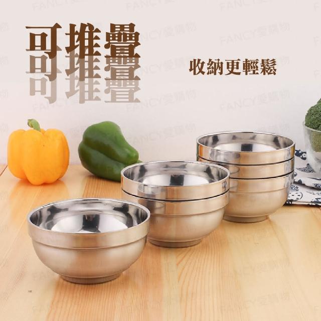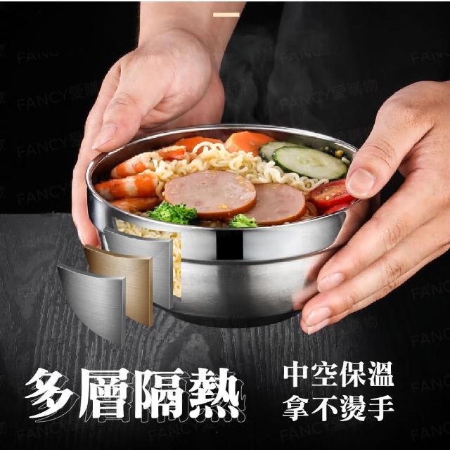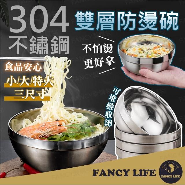 FANCY LIFE304不鏽鋼雙層防燙碗20cm(304不銹鋼隔熱碗 防燙碗 不銹鋼碗 隔熱碗 防摔碗)
