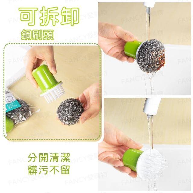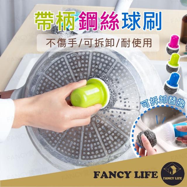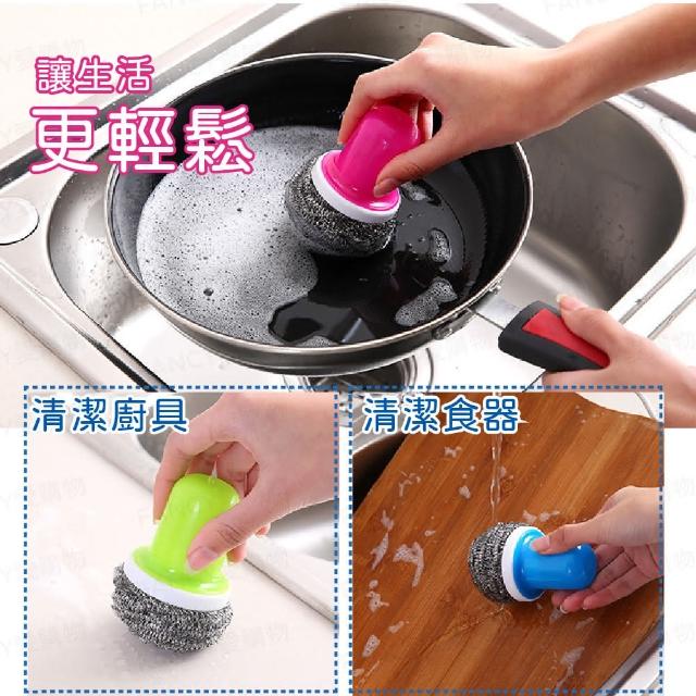 FANCY LIFE帶柄鋼絲球刷(鍋刷 洗碗刷 洗鍋刷 流理臺清潔刷 油汙刷 鋼絲球刷 不鏽鋼鍋刷 不鏽鋼刷)