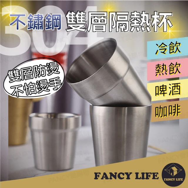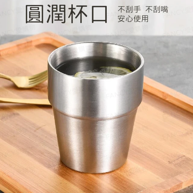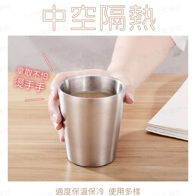 FANCY LIFE不鏽鋼雙層隔熱杯-300ml(隔熱杯 不鏽鋼杯 防摔杯 水杯 階梯杯 鋼杯 露營杯 咖啡杯 環保杯)