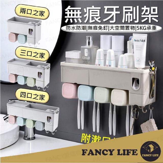FANCY LIFE浴室牙刷置物架-三口之家(牙刷架 免釘牙刷架 浴室收納架 牙刷置物架 浴室置物架 漱口杯架)