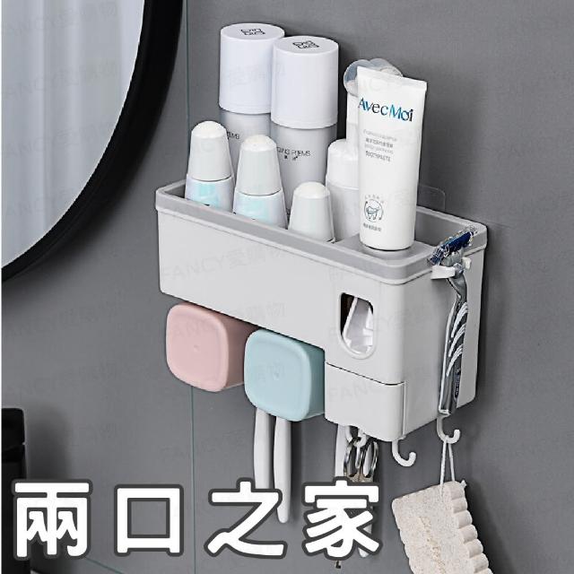 FANCY LIFE浴室牙刷置物架-兩口之家(牙刷架 免釘牙刷架 浴室收納架 牙刷置物架 浴室置物架 漱口杯架)