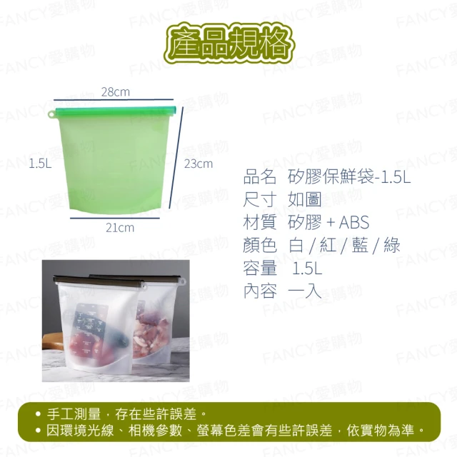 FANCY LIFE矽膠密封保鮮袋-1500ml(矽膠保鮮袋 食物保鮮袋 保鮮袋 密封保鮮袋 環保收納袋 食物袋)