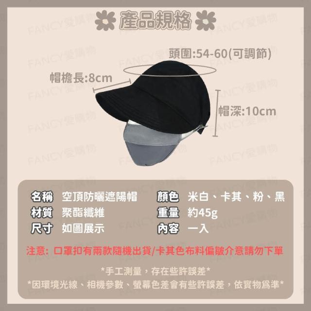 FANCY LIFE空頂防曬遮陽帽(鴨舌帽 漁夫帽 防晒遮陽帽 棒球帽 顯瘦遮陽帽 大頭圍防晒帽 口罩扣帽)