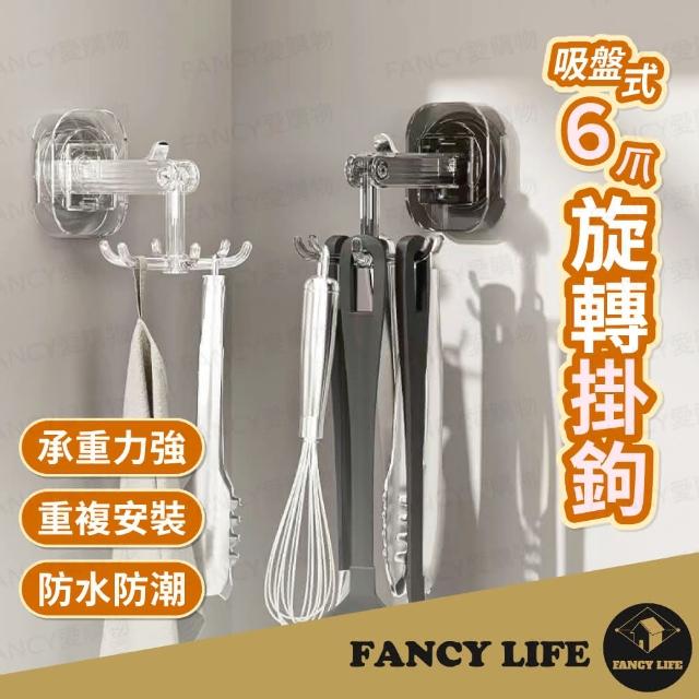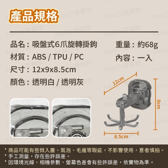 FANCY LIFE吸盤式6爪旋轉掛鉤(真空吸盤掛鉤 吸盤掛鉤 無痕掛鉤 旋轉掛鉤 浴室掛鉤 廚房掛鉤)