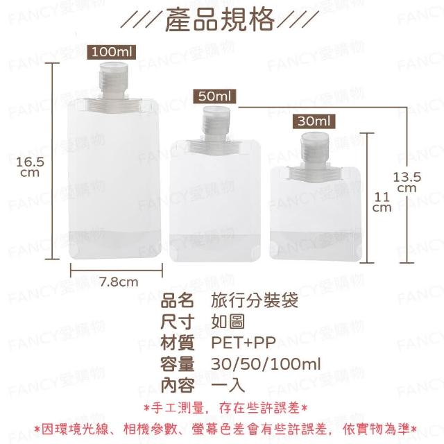 FANCY LIFE旅行分裝袋-3款尺寸(液體分裝 分裝瓶 乳液瓶 分裝袋 旅行分裝袋 液體收納袋 收納袋 旅行袋 吸嘴袋)