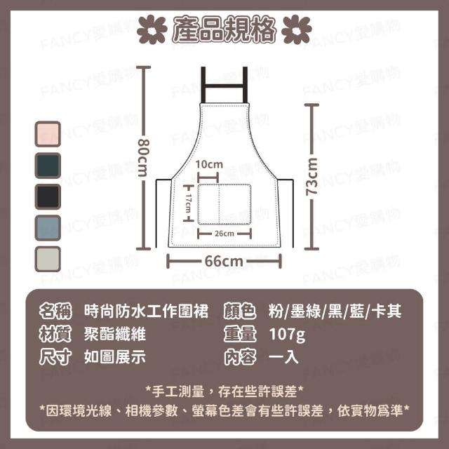 FANCY LIFE時尚防水工作圍裙(工作圍裙 廚房 防水防油 家用圍裙 廚房 烘焙 咖啡廳 工作服)