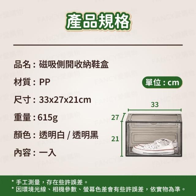 FANCY LIFE磁吸側開收納鞋盒(收納櫃 鞋櫃 鞋盒 運動鞋盒 透明鞋盒 收納盒 置物櫃 展示櫃 磁吸)