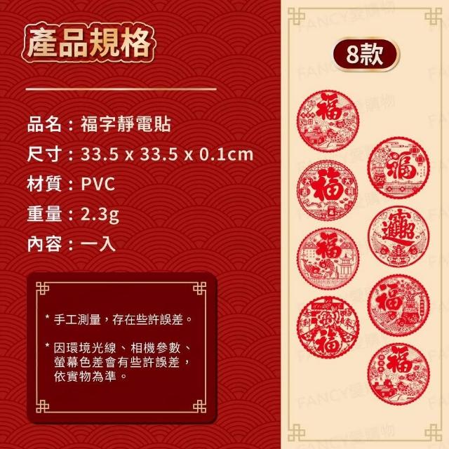FANCY LIFE福字靜電貼(春節用品 房門佈置 窗戶貼紙 靜電貼 過年春節 裝飾窗花 新年紅 福氣慶祝)