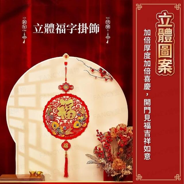 FANCY LIFE新春立體福字掛飾(元旦春節 春節用品 房門佈置 窗戶掛飾 過年春節 裝飾窗花 福氣慶祝 福字中國結掛飾 喜慶掛飾)