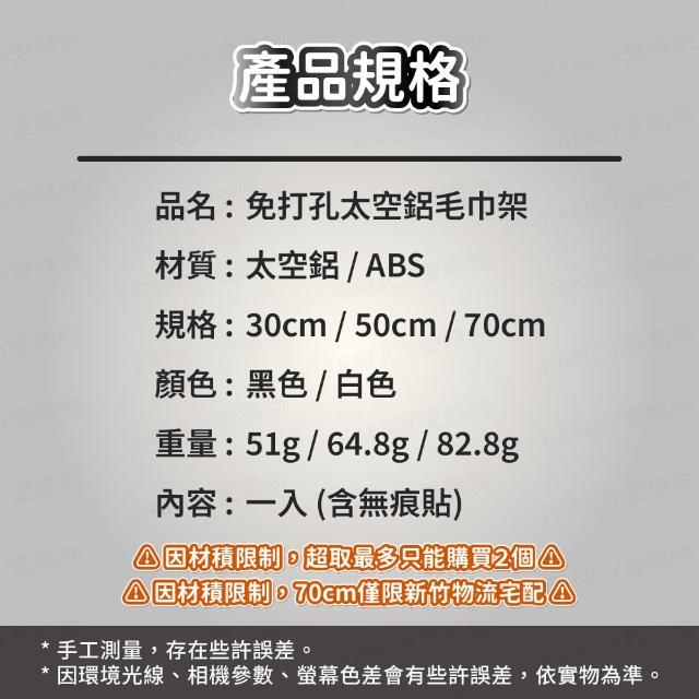FANCY LIFE免打孔太空鋁毛巾架-50/70cm(毛巾杆 浴室毛巾架 浴室收納架 太空鋁貼片式 無痕浴巾架)