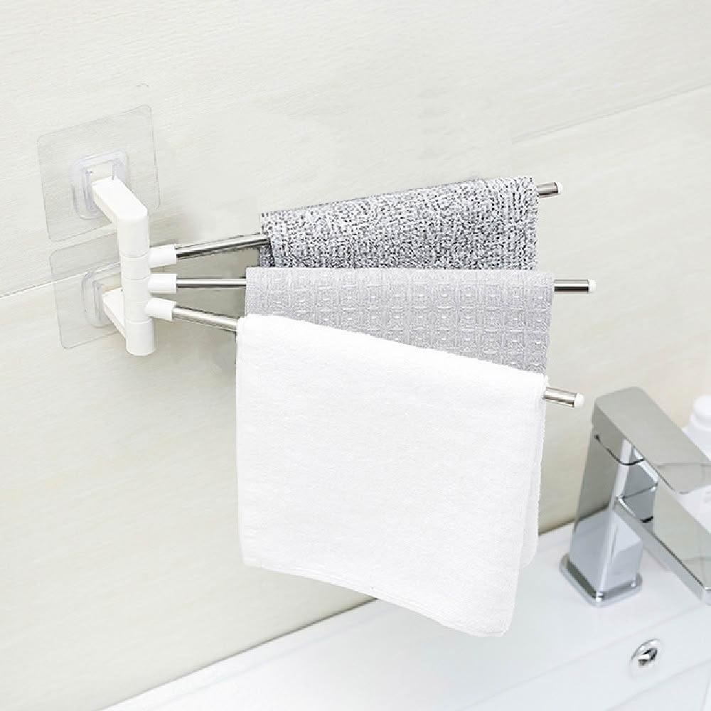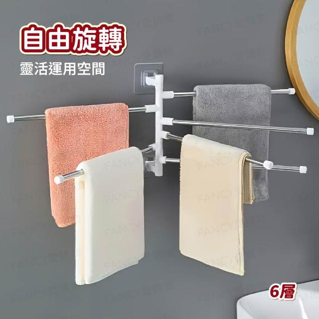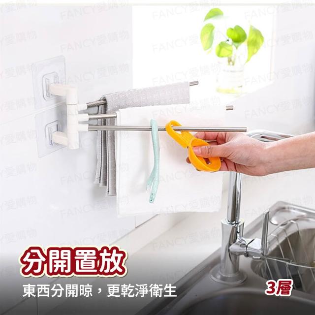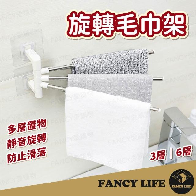 FANCY LIFE旋轉毛巾架(毛巾架 壁掛 置物架 洗手間 浴室 欄杆 多層 廚房 不鏽鋼 欄杆 架子 掛物)
