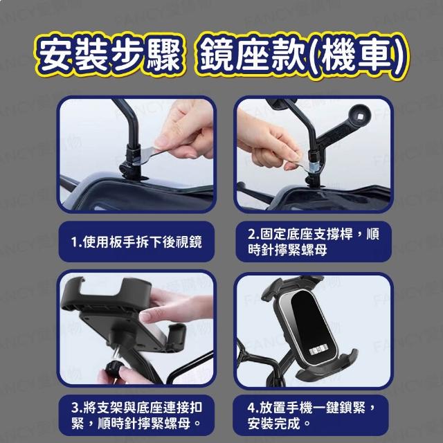 FANCY LIFE推放式機車手機架(手機架 機車 自行車 鏡座款 後視鏡 車把款 橫把款 騎車 手機支架)