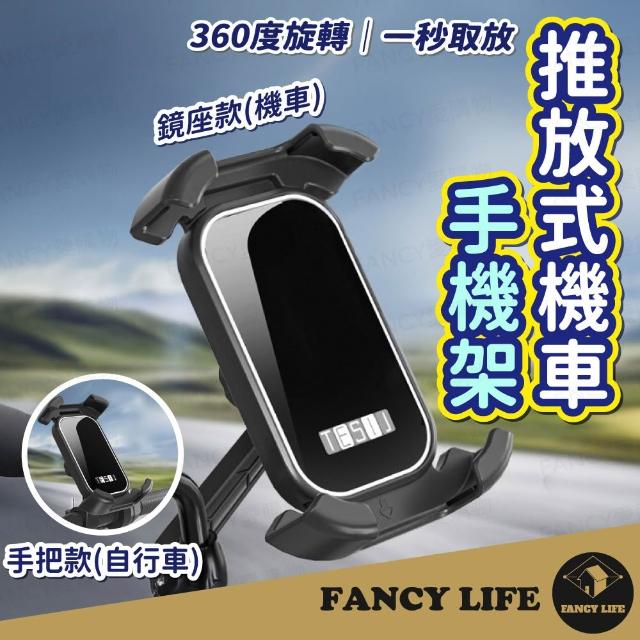 FANCY LIFE推放式機車手機架(手機架 機車 自行車 鏡座款 後視鏡 車把款 橫把款 騎車 手機支架)
