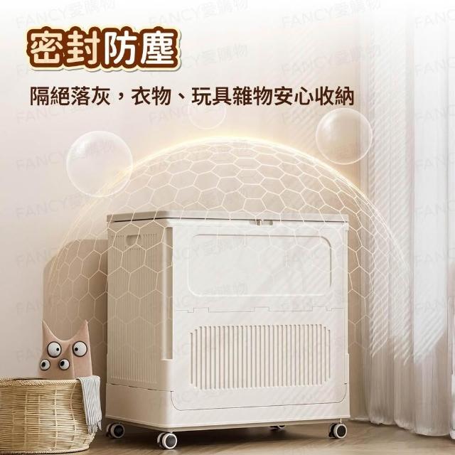 FANCY LIFE123L帶輪折疊收納箱(玩具收納筐 折疊帶輪 翻蓋儲物箱 收納箱大容量 衣物收納 儲物箱儲物櫃)