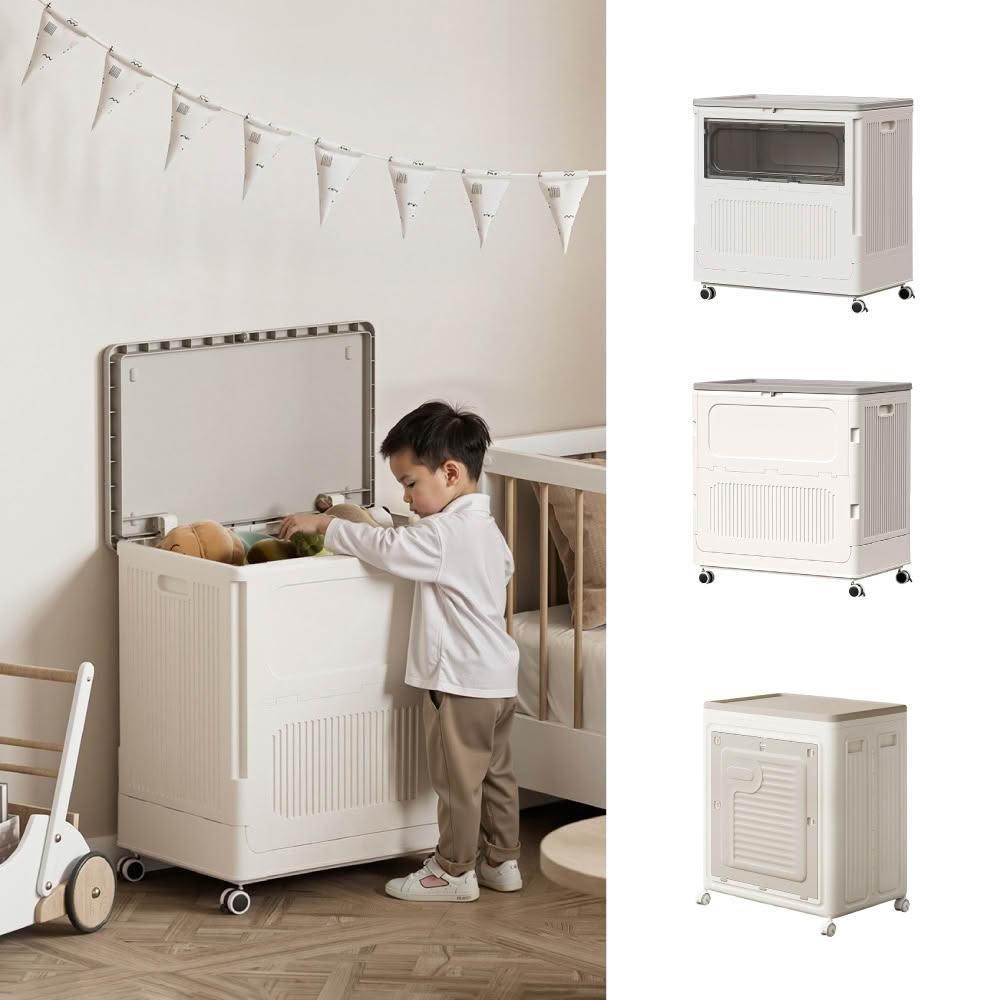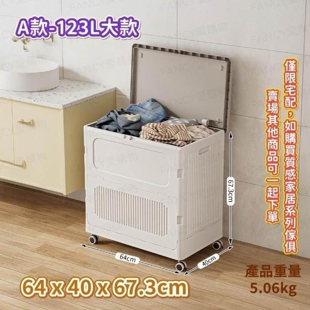FANCY LIFE123L帶輪折疊收納箱(玩具收納筐 折疊帶輪 翻蓋儲物箱 收納箱大容量 衣物收納 儲物箱儲物櫃)