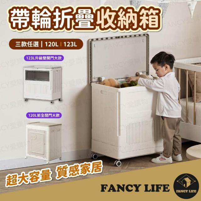FANCY LIFE123L帶輪折疊收納箱(玩具收納筐 折疊帶輪 翻蓋儲物箱 收納箱大容量 衣物收納 儲物箱儲物櫃)