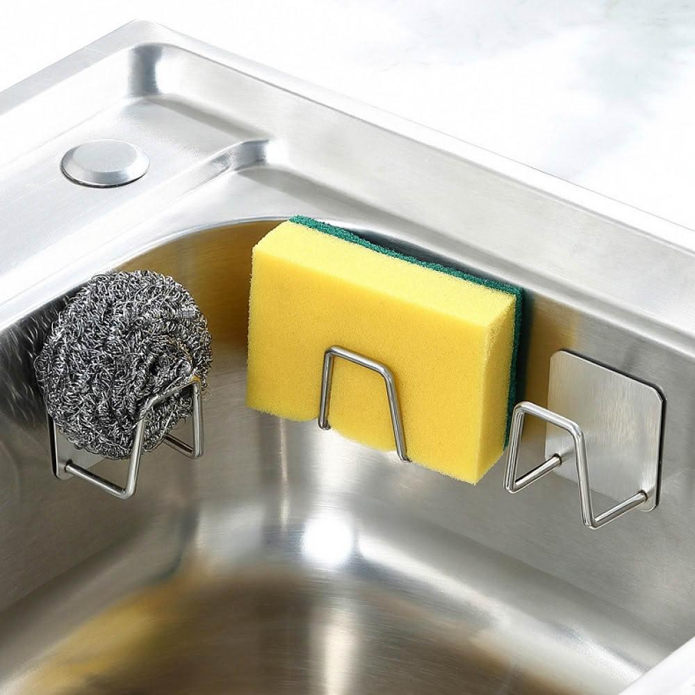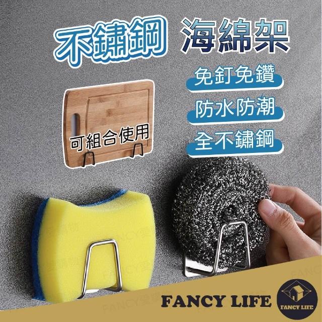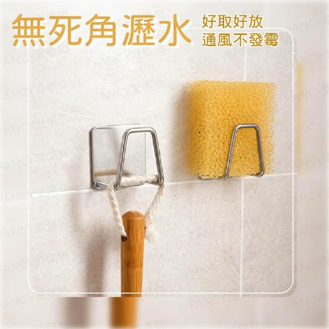 FANCY LIFE不鏽鋼海綿架-3入組(不鏽鋼瀝水架 海綿掛架 菜瓜布架 海綿架 無痕掛架 掛架 廚具收納 收納架)
