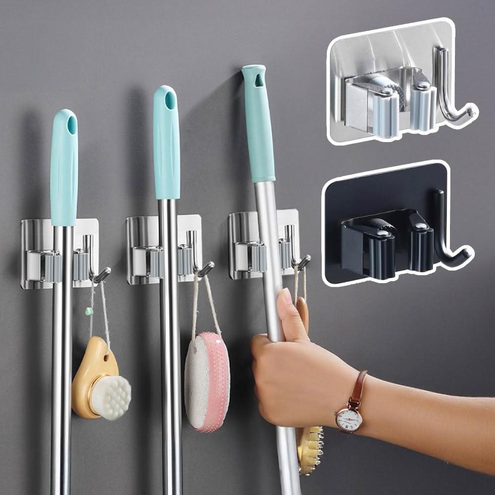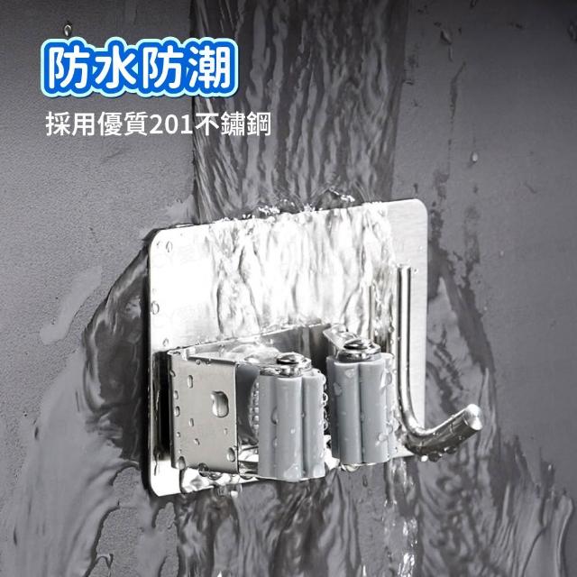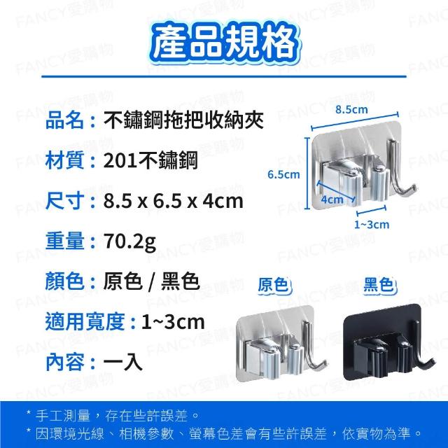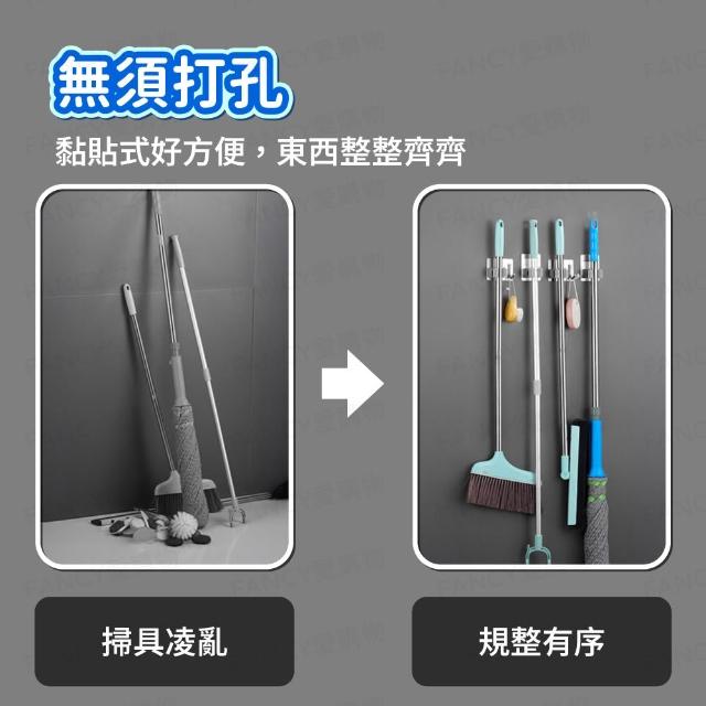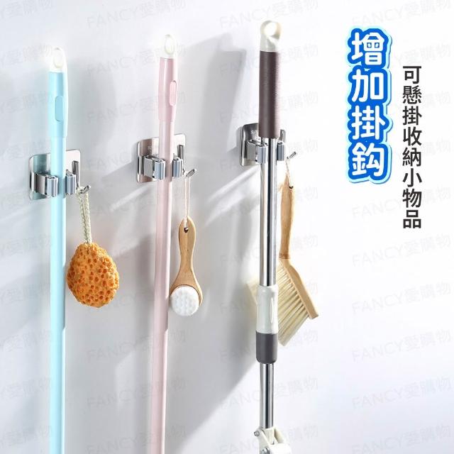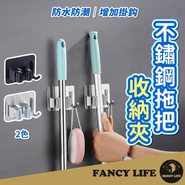 FANCY LIFE不鏽鋼拖把收納夾(拖把夾 不鏽鋼 壁掛 拖把架 掃把夾 卡扣夾 掃把架 掃具架 拖把掛勾 黏貼式)