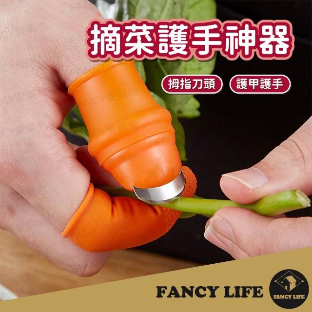 FANCY LIFE摘菜護手神器(採摘神器 拇指刀 含5個矽膠指套 摘菜挑菜 保護指甲 鐵指甲 掐菜園藝農用 防滑防割手套 指套)