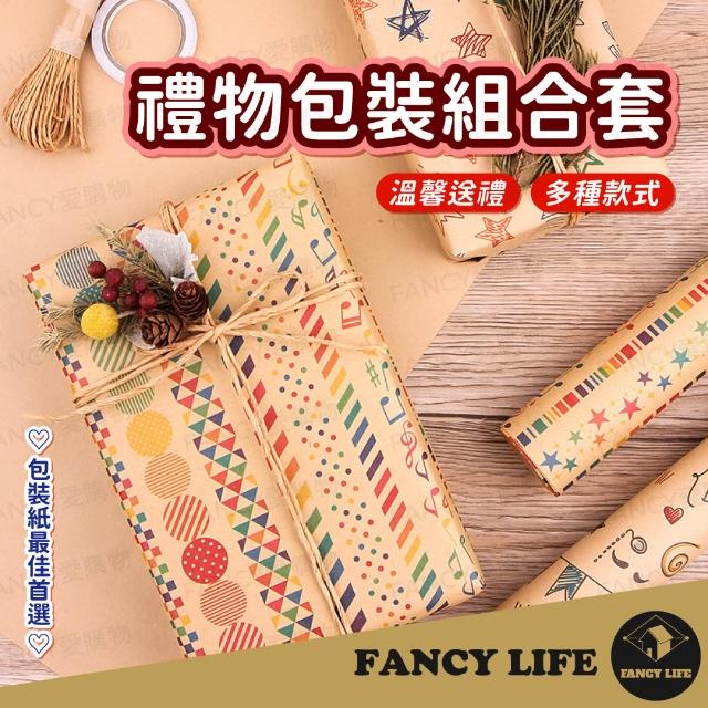 FANCY LIFE禮物包裝組合套(聖誕包裝紙 牛皮包裝紙 復古包裝紙 禮品包裝紙 聖誕禮物包裝 生日禮物 生日DIY 節日 交換禮物 禮品