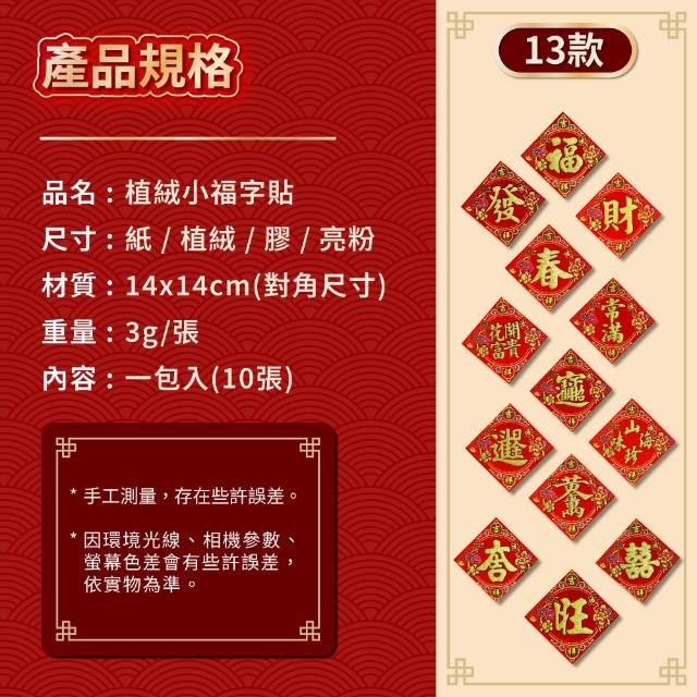 FANCY LIFE植絨小福字貼(春節用品 2026 迷你福字貼 福寶大吉春字 自帶膠 窗貼門貼 過年布置 馬年 植絨立體)