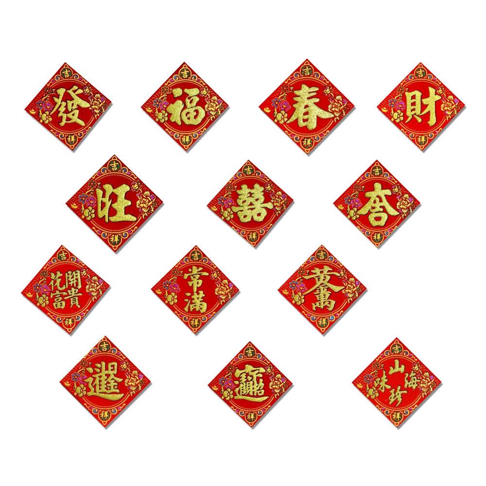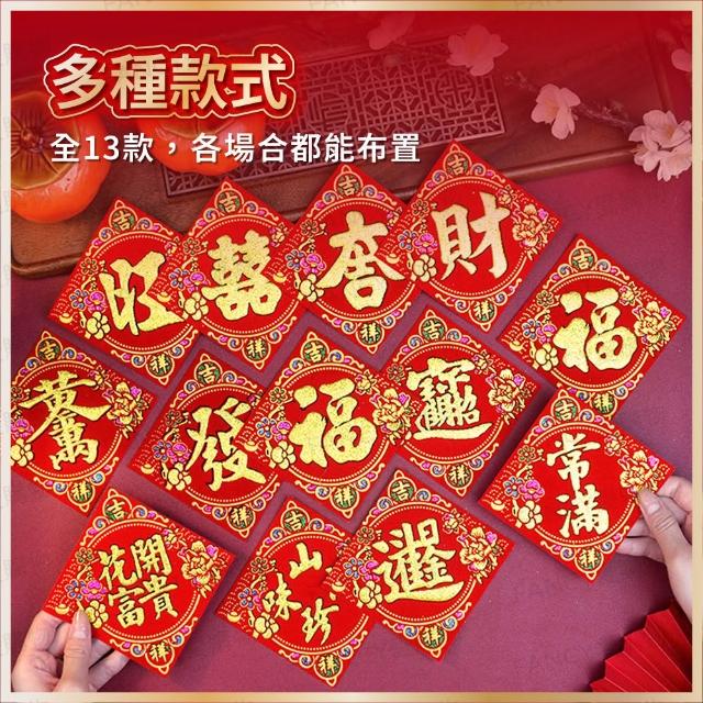 FANCY LIFE植絨小福字貼(春節用品 2026 迷你福字貼 福寶大吉春字 自帶膠 窗貼門貼 過年布置 馬年 植絨立體)