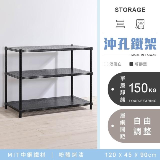 YCDMIT 耐重沖孔式三層烤漆置物架 120x45x90cm - 2色可選 (沖孔架 鐵力士架 收納架 貨架 層架 鐵架 儲物架)