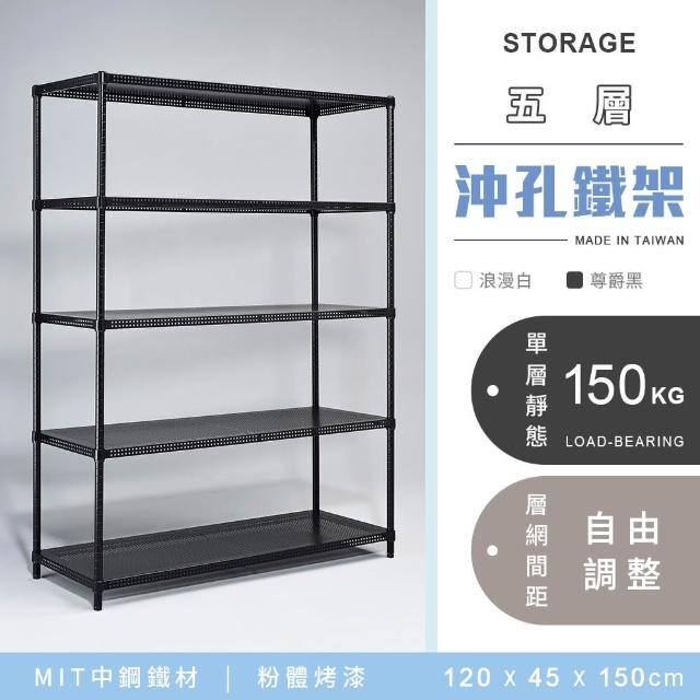 YCDMIT 耐重沖孔式五層烤漆置物架 120x45x150cm - 2色可選 (沖孔架 鐵力士架 收納架 貨架 層架 鐵架 儲物架)