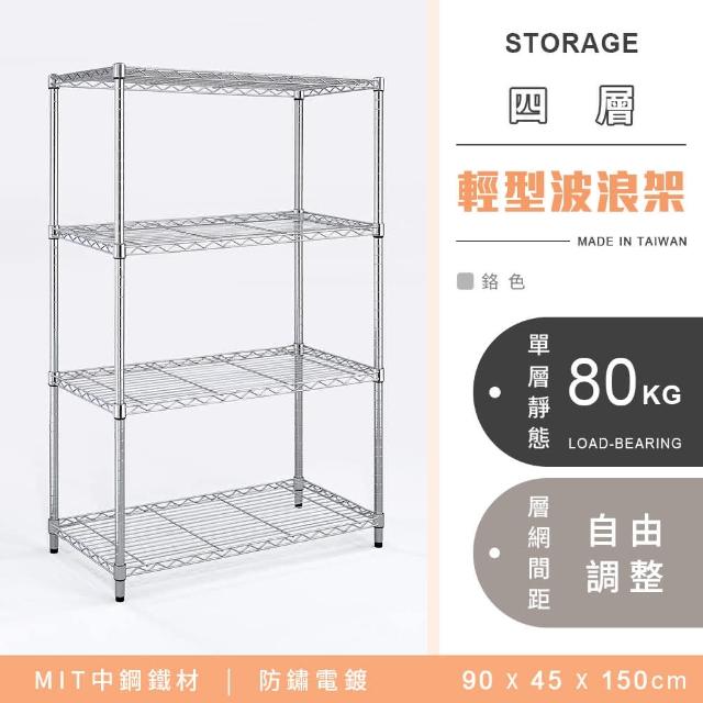 YCDMIT 耐重鐵力士 輕型四層電鍍波浪架 90x45x150cm - 鉻色 (波浪架 鐵力士架 收納架 貨架 層架 鐵架 儲物架)