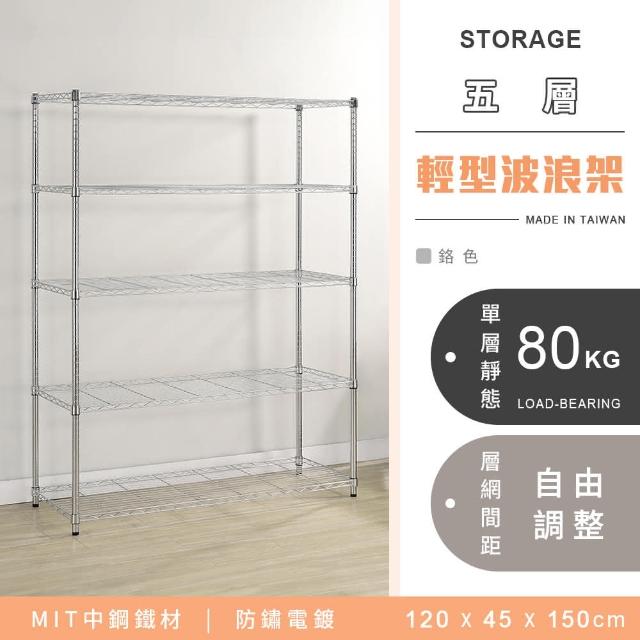 YCDMIT 耐重鐵力士 輕型五層電鍍波浪架 120x45x150cm - 鉻色 (波浪架 鐵力士架 收納架 貨架 層架 鐵架 儲物架)