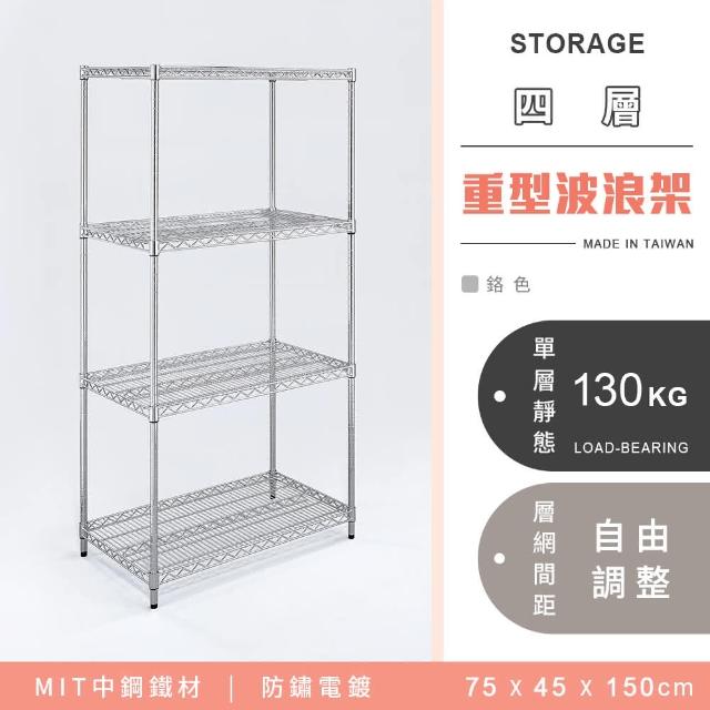 YCDMIT 耐重鐵力士 重型四層電鍍波浪架 75x45x150cm - 鉻色 (波浪架 鐵力士架 收納架 貨架 層架 鐵架 儲物架)